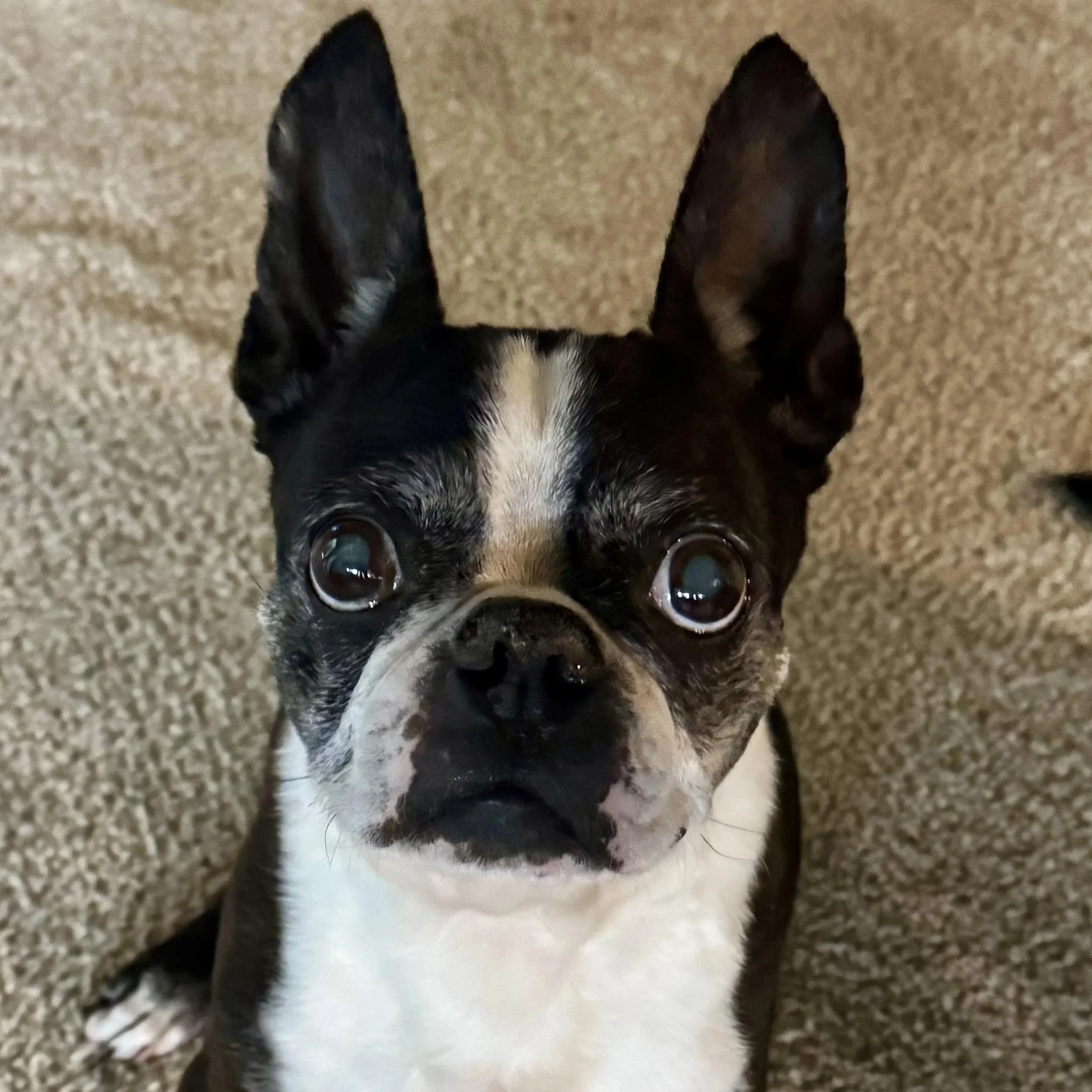 As far as seniors go he’s healthy and continues to be an active Boston Terrier .